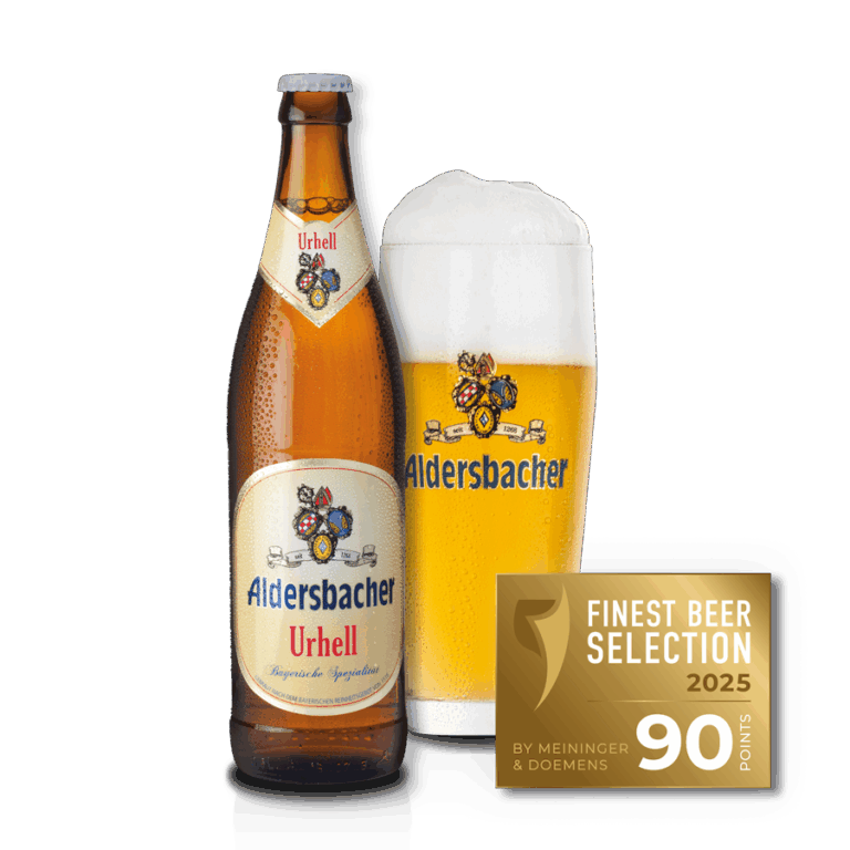 Blank filtriertes sonnengelbes Vollbier, feinporiger Schaum, mild gehopft mit Hallertauer Tradition und Hallertauer Perle.